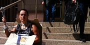Protesta de una fčmina de 40 annos chi s'at postu sas cadenas in sas iscalas de su tribunale de Tątari