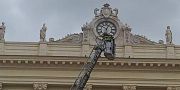 Unu de sos manifestantes chi dae gianteris òcupat sa parte prus arta de Palatzu Sciuti paris cun sos operajos de sa Multiss s'est intesu male pro curpa de s'"istress" e pro su càmbiu de temperadura